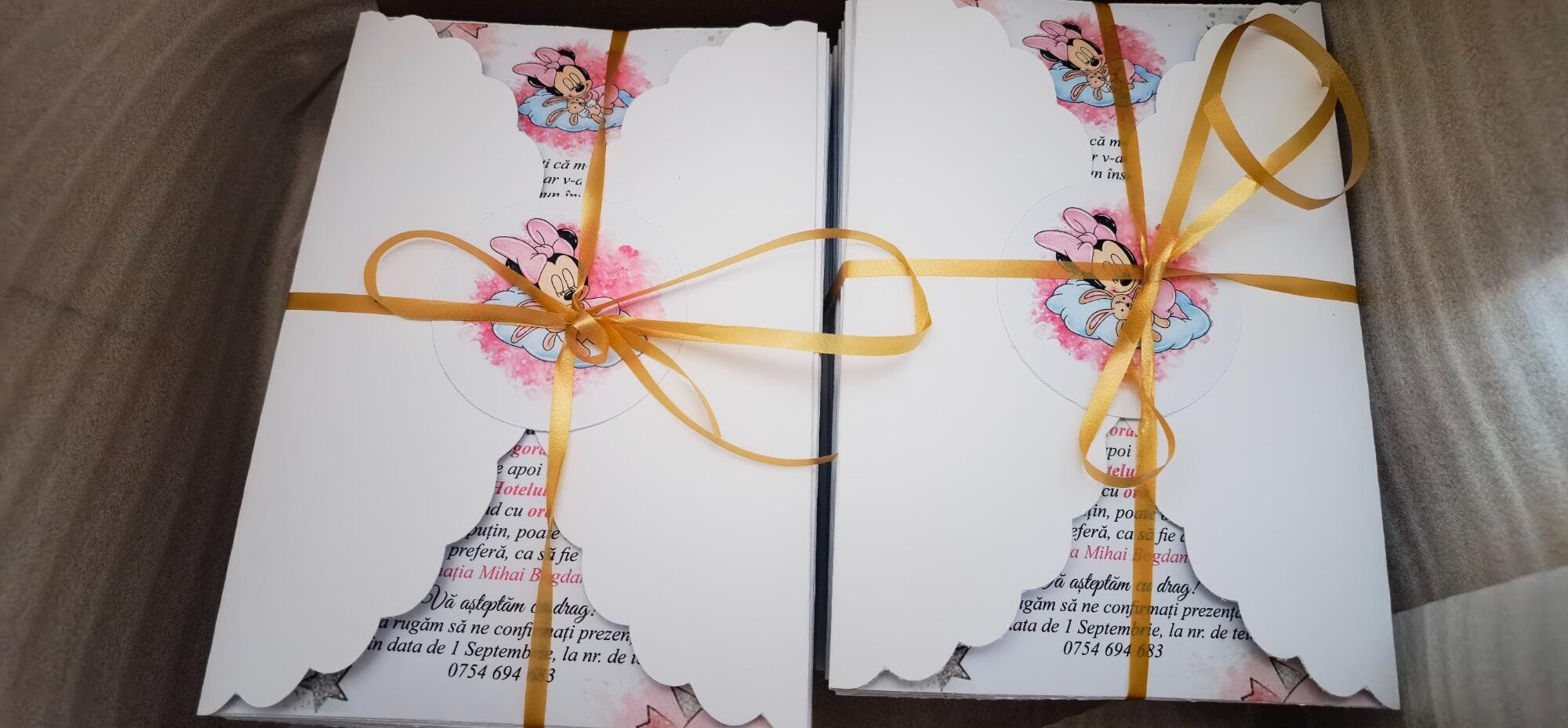 - plic, eticheta si fundiță (se pot alege culorile dorite), tipărire & asamblare,