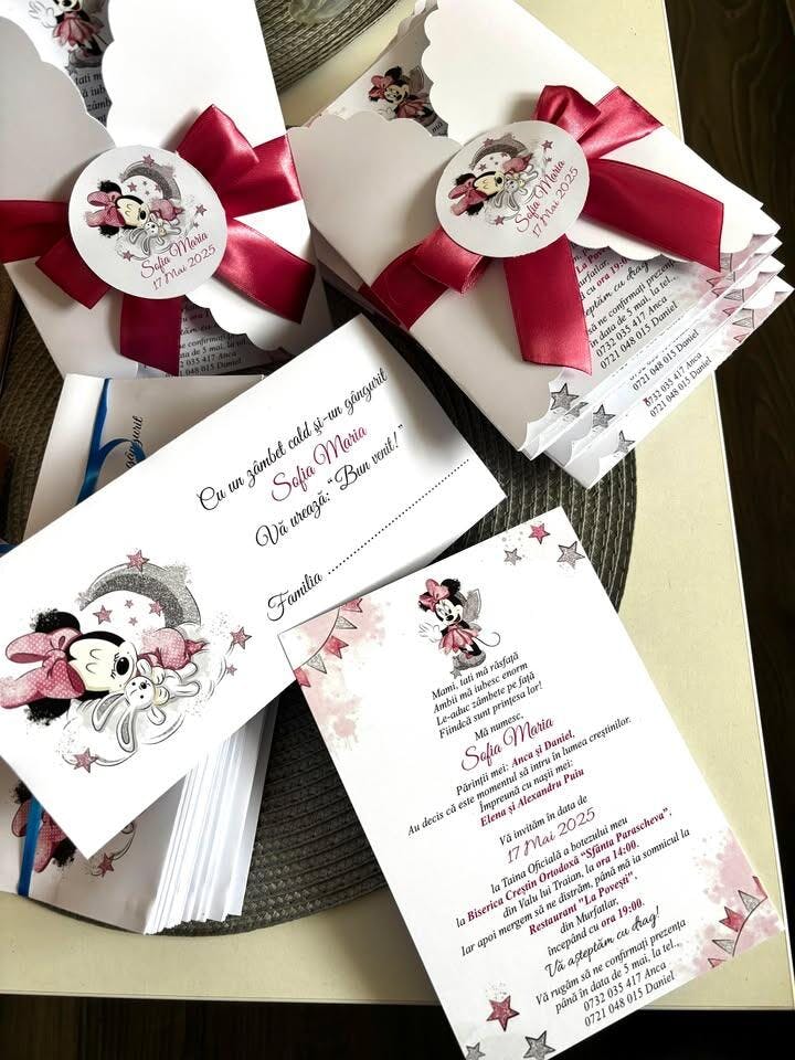 Invitatie Botez fetita tema Minnie - Model B19