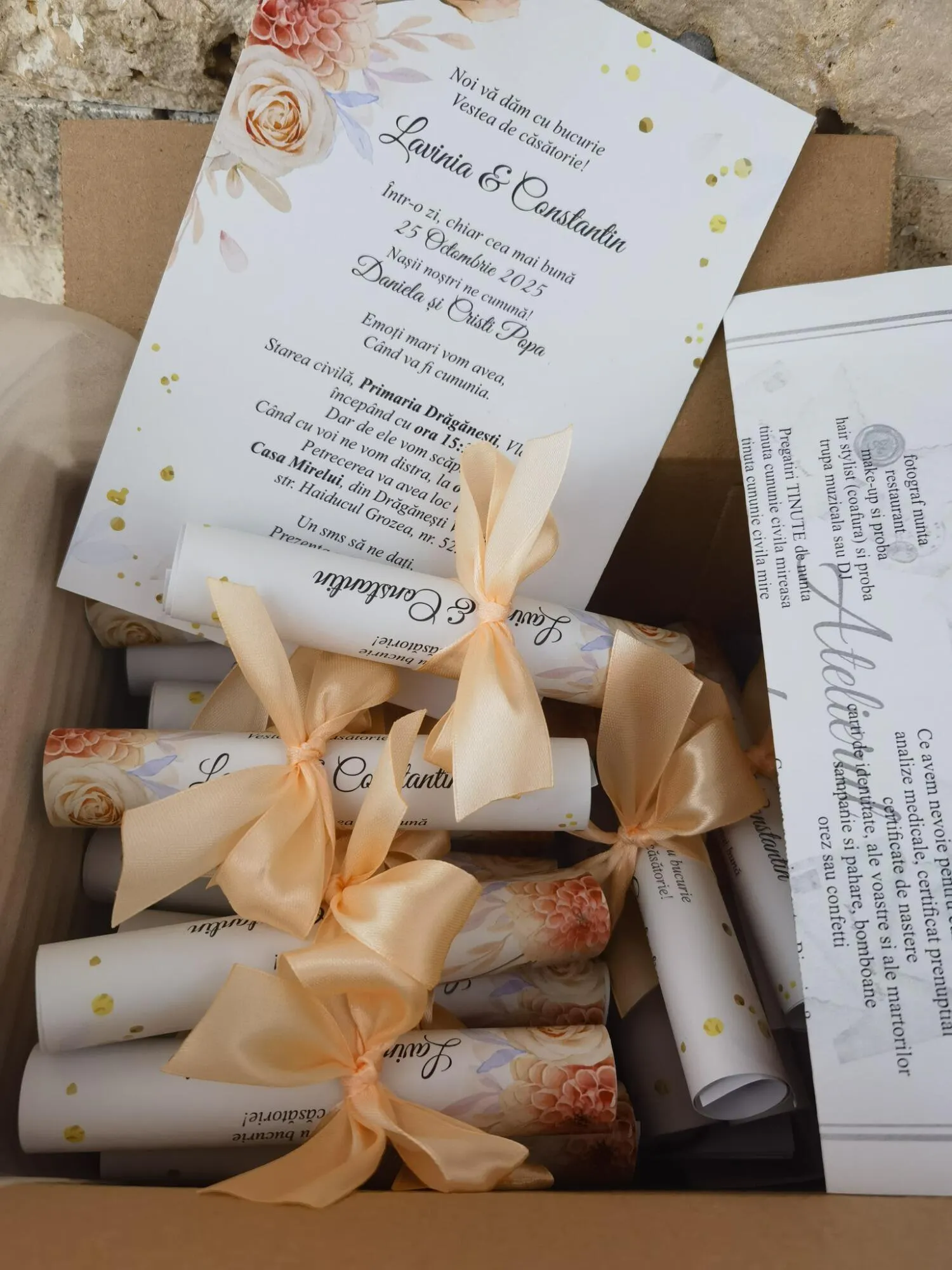 - invitație printată, rulata manual,