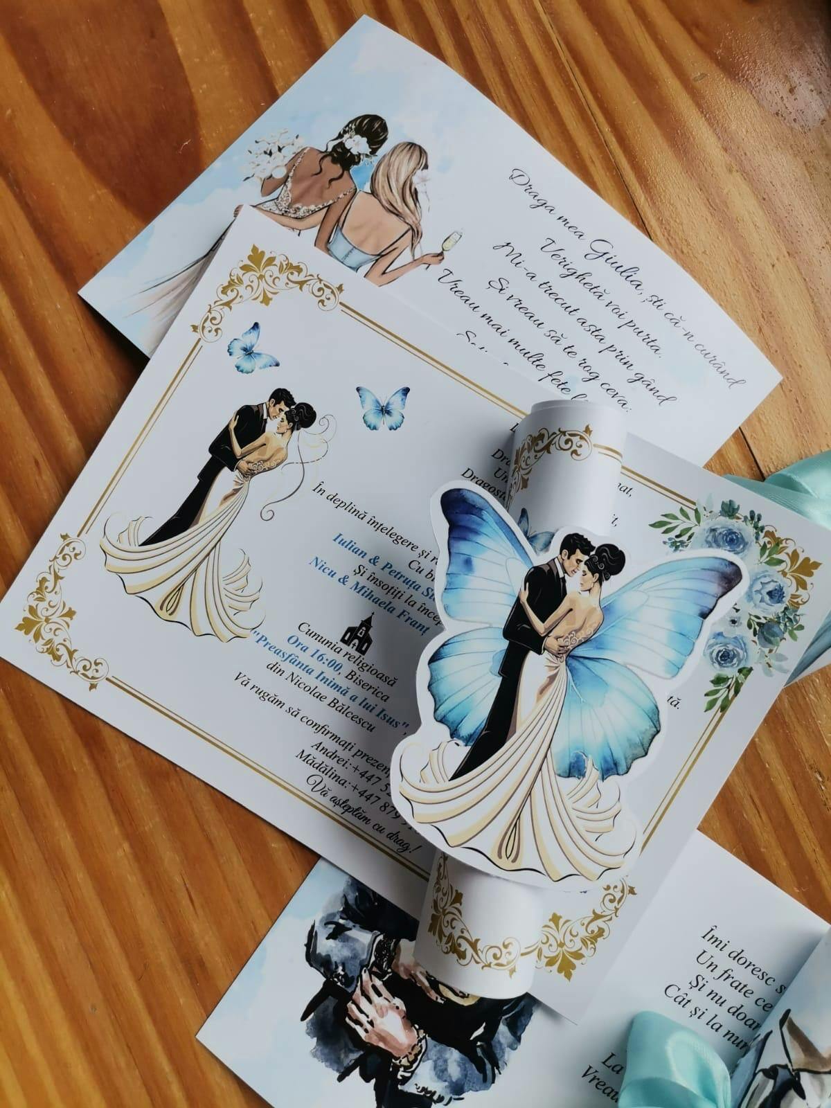 Invitație de Nunta rulata, personalizata cu Fluture.