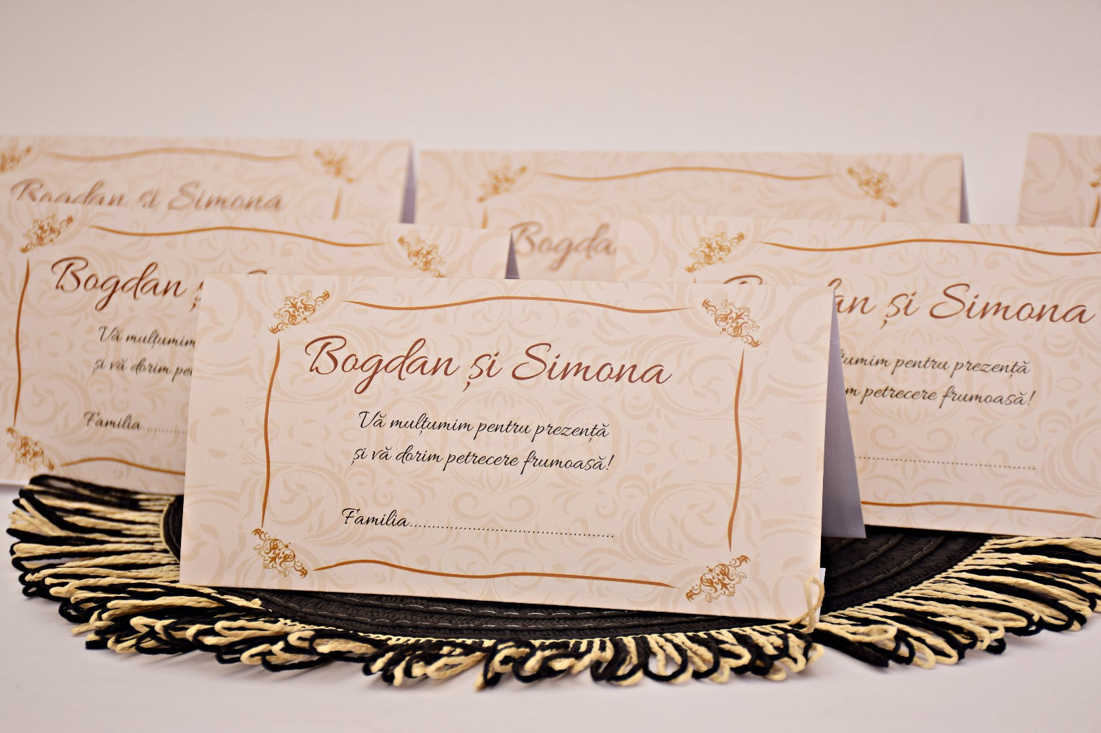 Cu aceeasi grafică se pot realiza Plicuri de bani, Meniuri, Numere de masă si Lista de invitati (Oglinda Sălii).