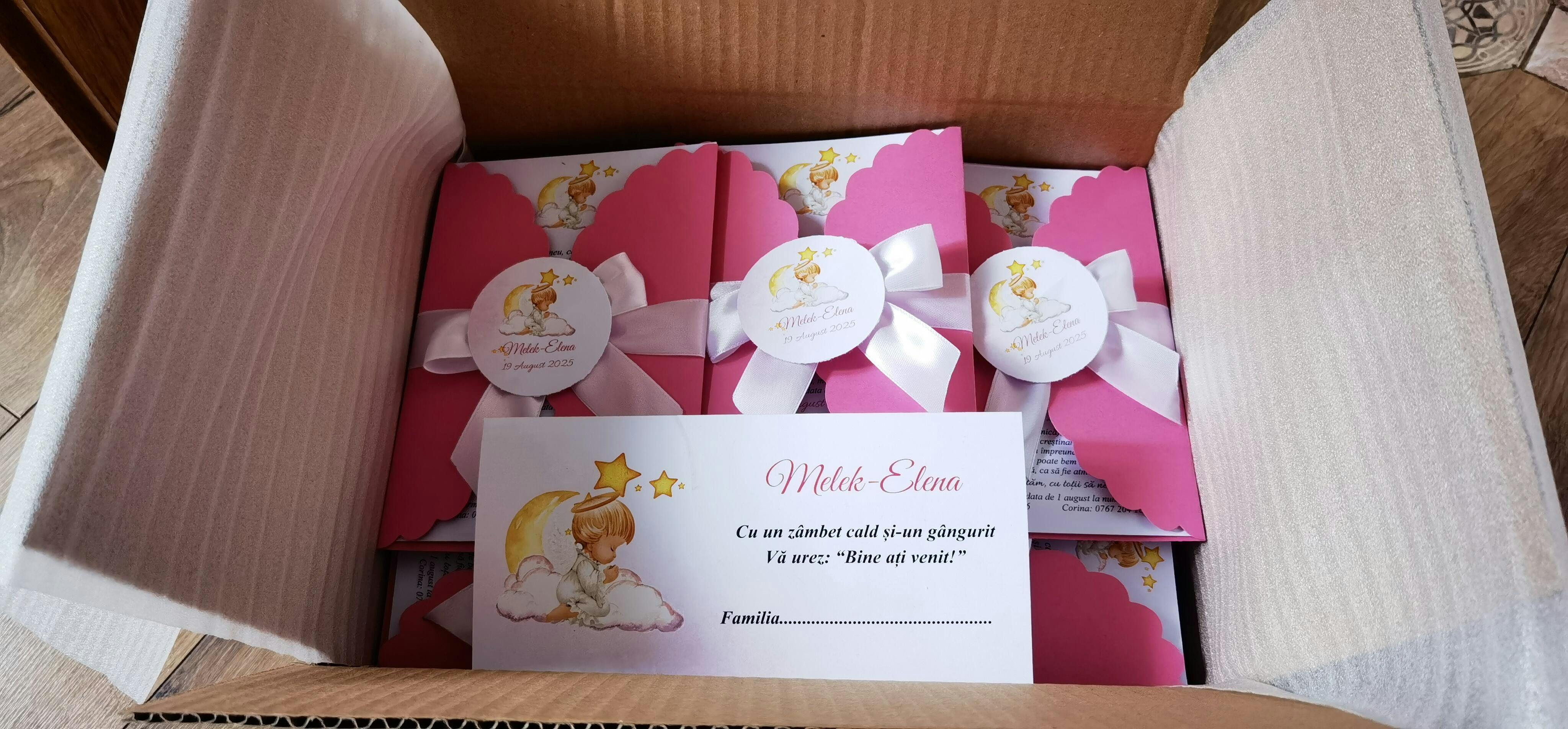 - plic pentru invitatie, eticheta si fundiță (se pot alege culorile dorite), tipărire & asamblare,