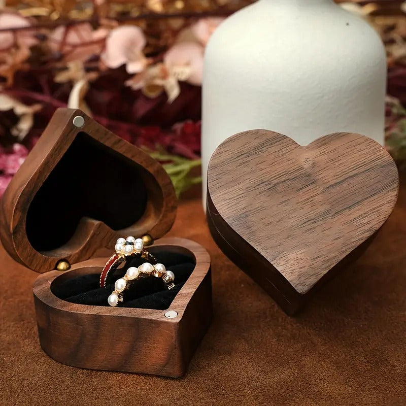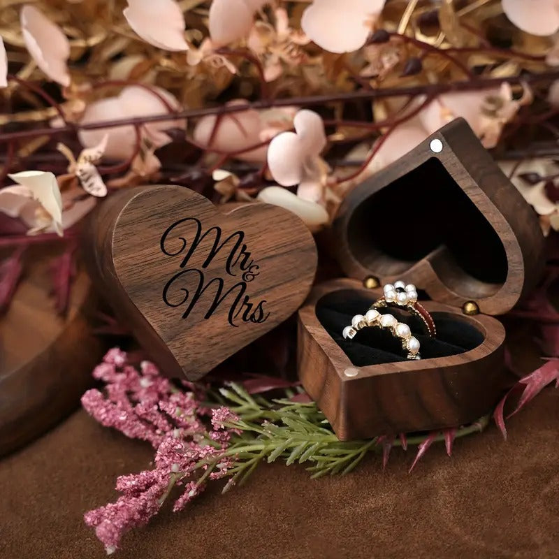 Alege o cutie de verighete din lemn, personalizată cu nume și dată.