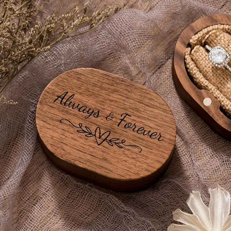 Descoperă eleganța unei cutii de verighete din lemn, realizată cu atenție la detalii și personalizată pentru momentul vostru special. Ideală pentru ceremonia de nuntă, ședințele foto romantice și păstrarea amintirilor de suflet
