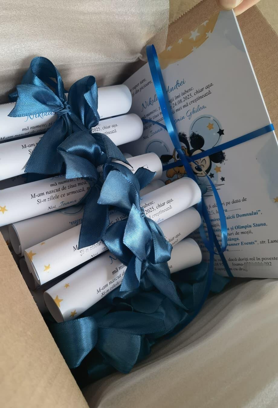🎀 Invitație de Botez Rulată cu Fundiță 🎀