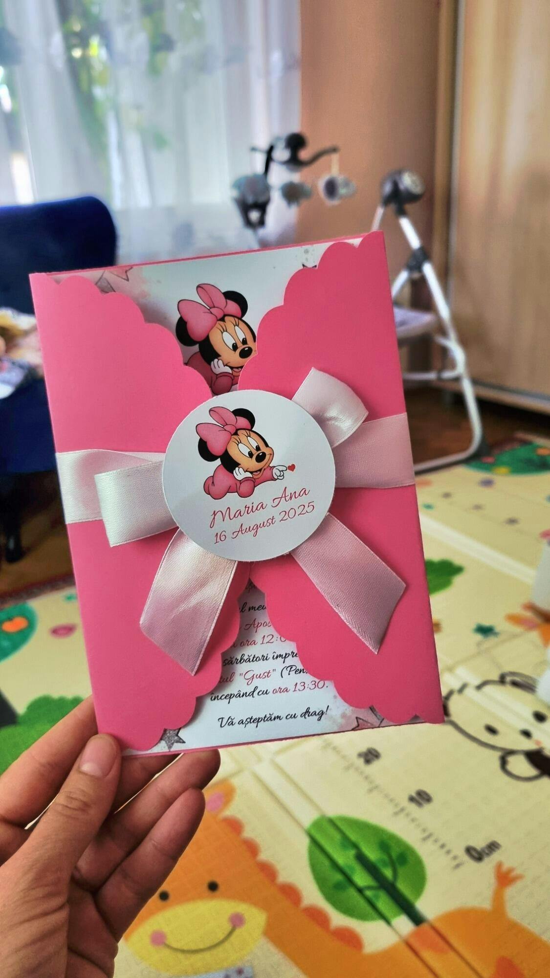 🎀 Invitație de Botez cu tema Minnie 🎀