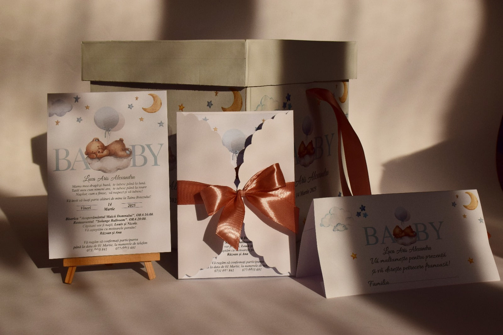 - personalizare grafică (modelul invitației este la alegere din design-urile de pe site ori nou),