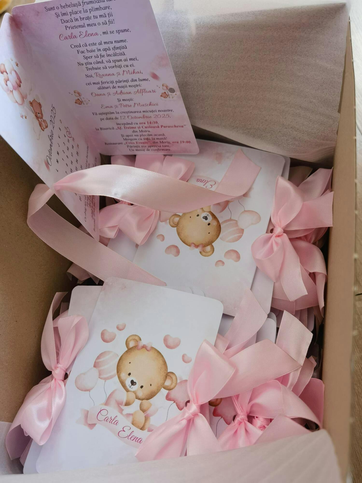🎀 Invitație de Botez tip Cărticică cu Fundiță, personalizată - Tema Ursuleț🎀