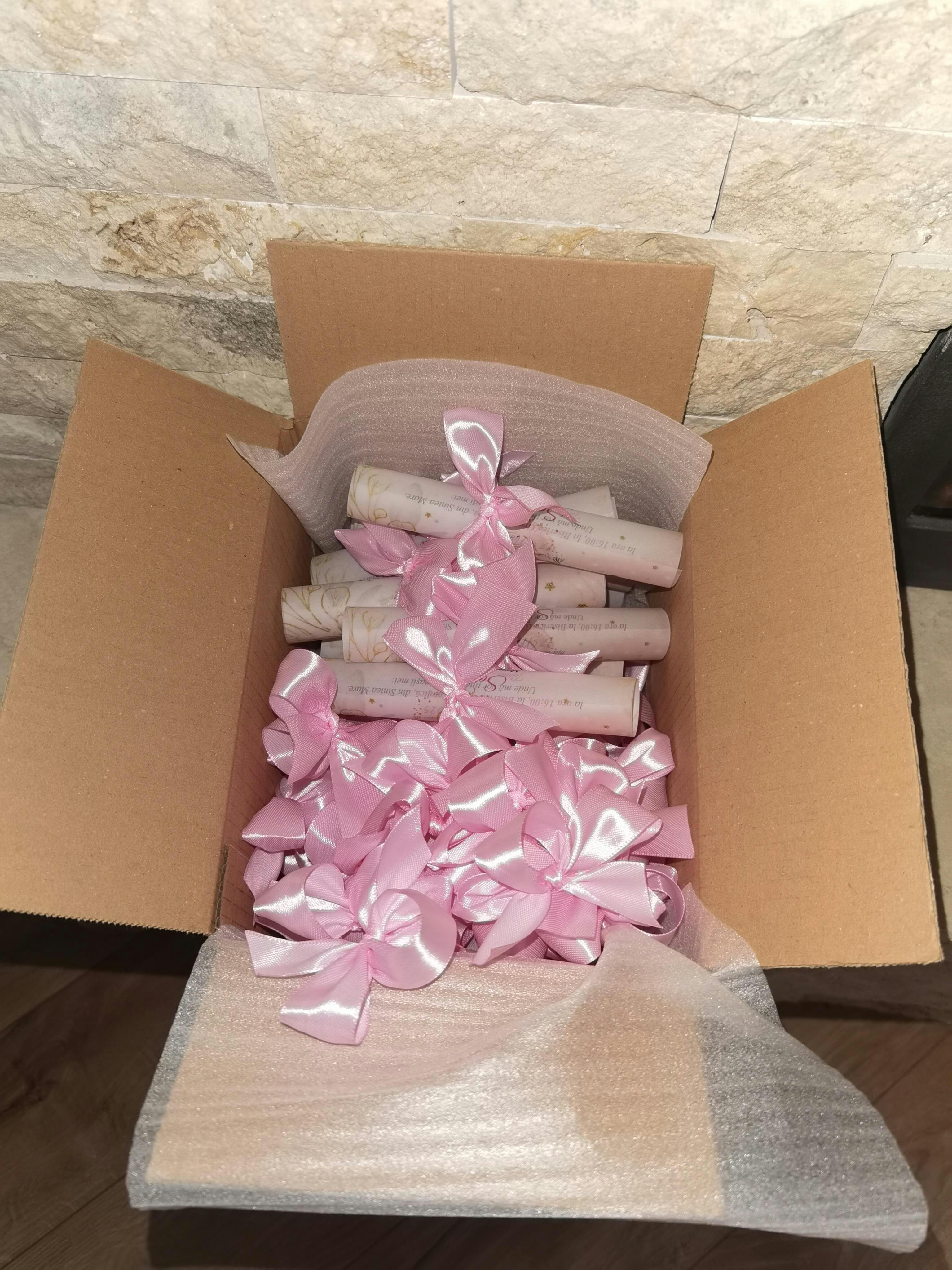 Invitație de Nunta handmade pe hârtie de calc rulata cu fundita