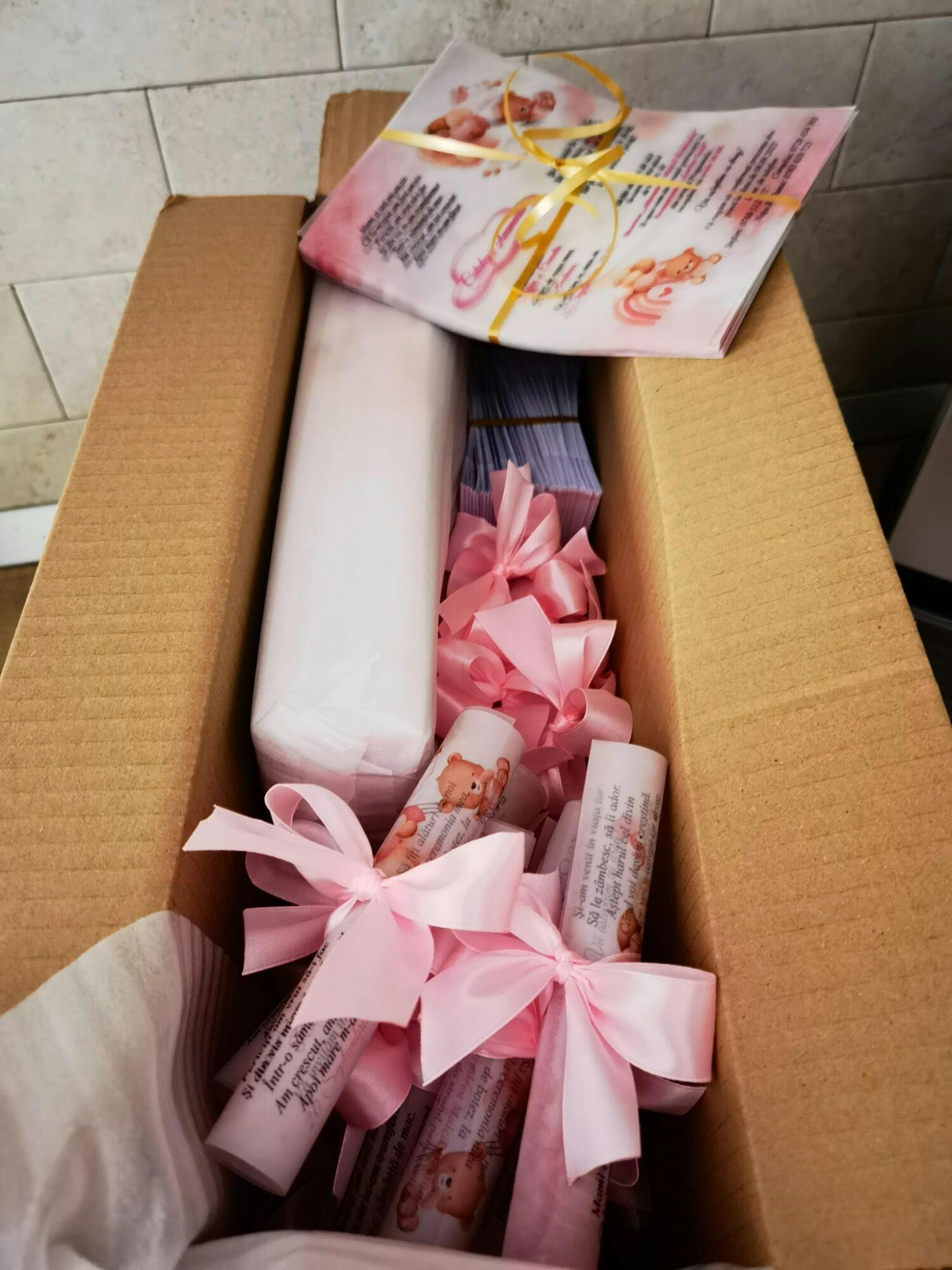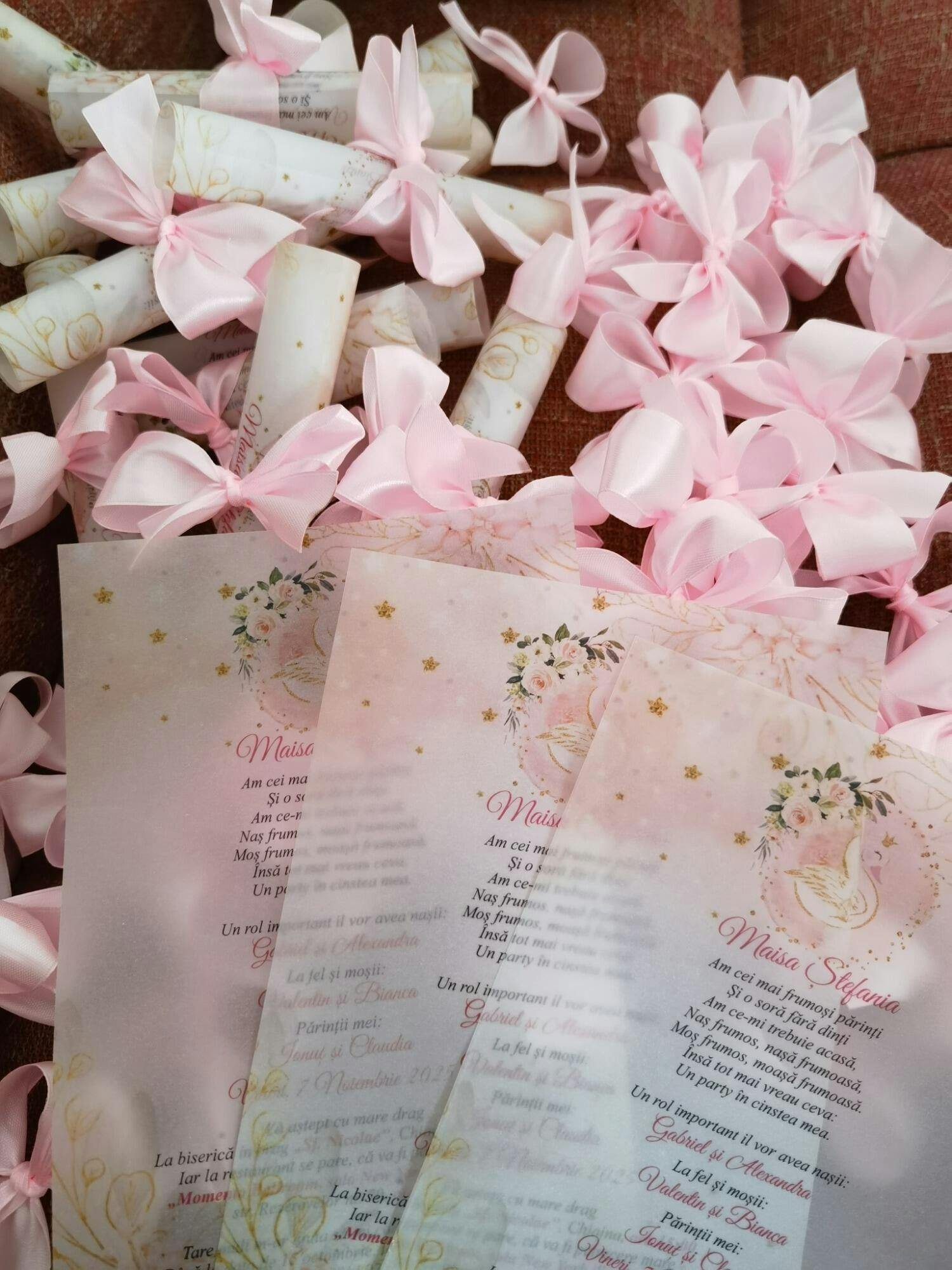 - invitație printată pe hartie de calc si rulata manual