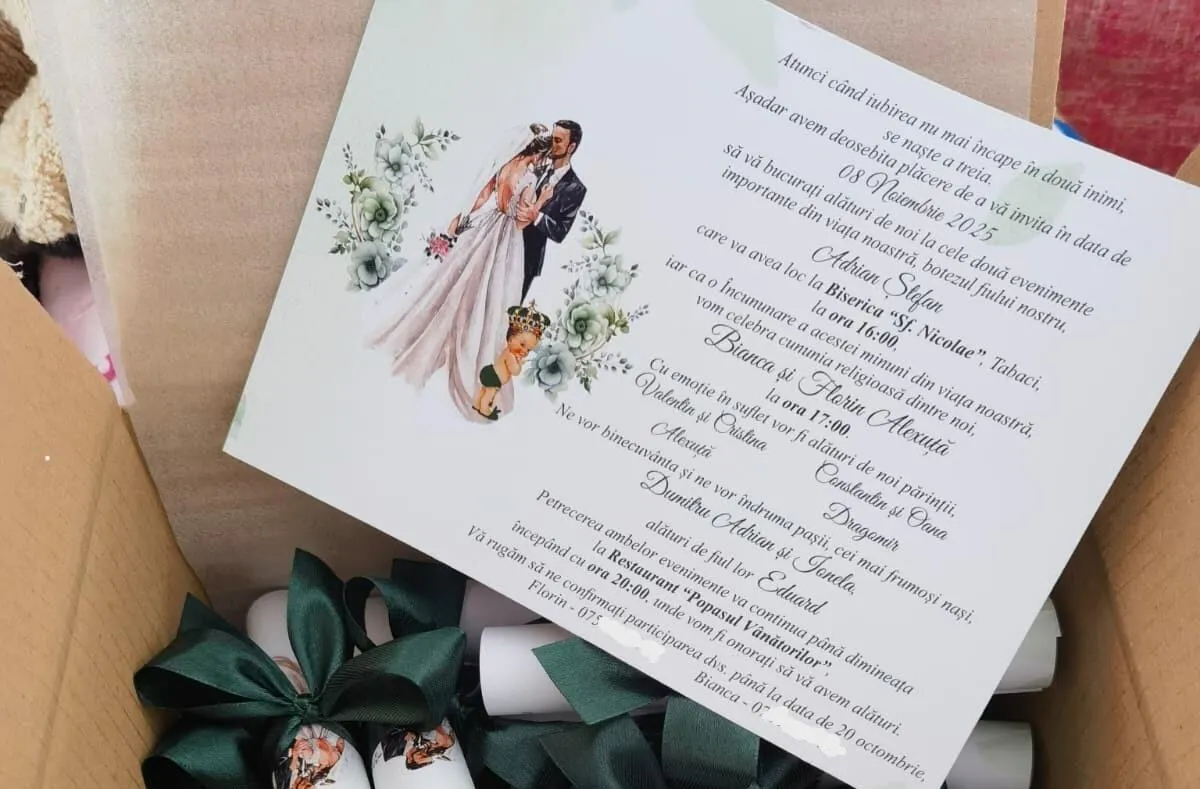 🎁 Bonus special: Invitația digitală GRATUITĂ (poza) la fiecare comandă de invitații!