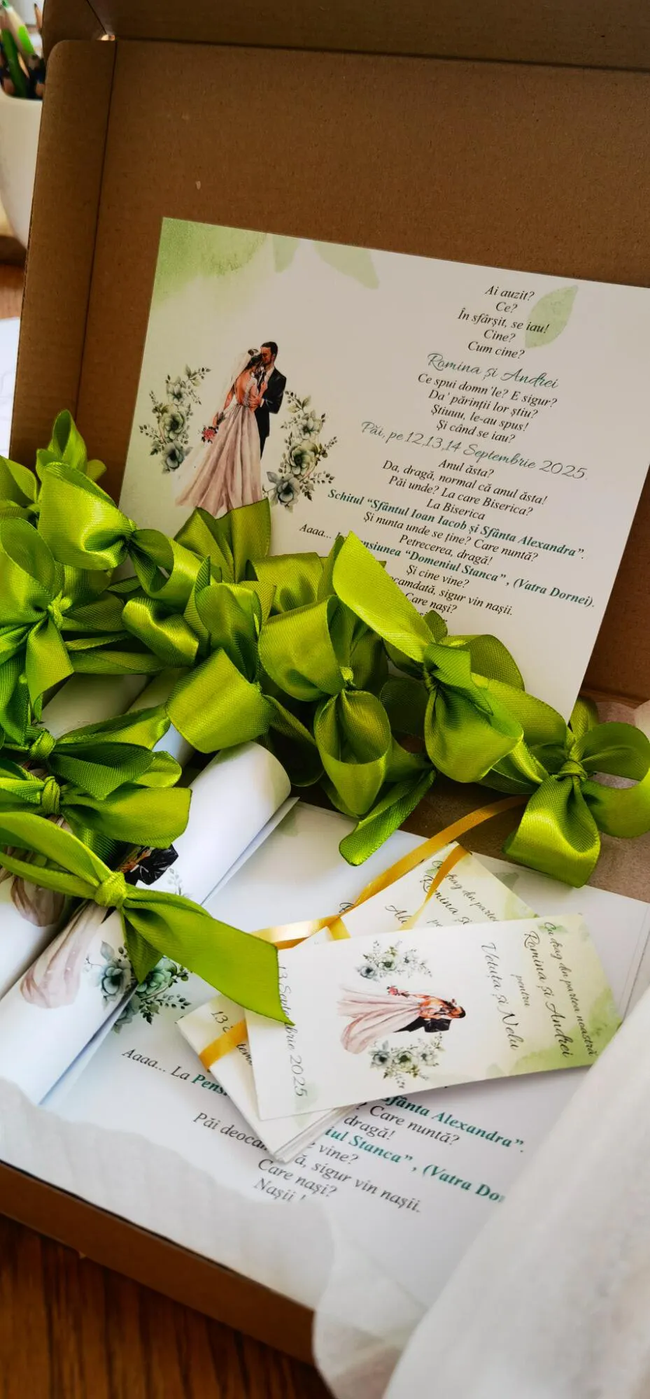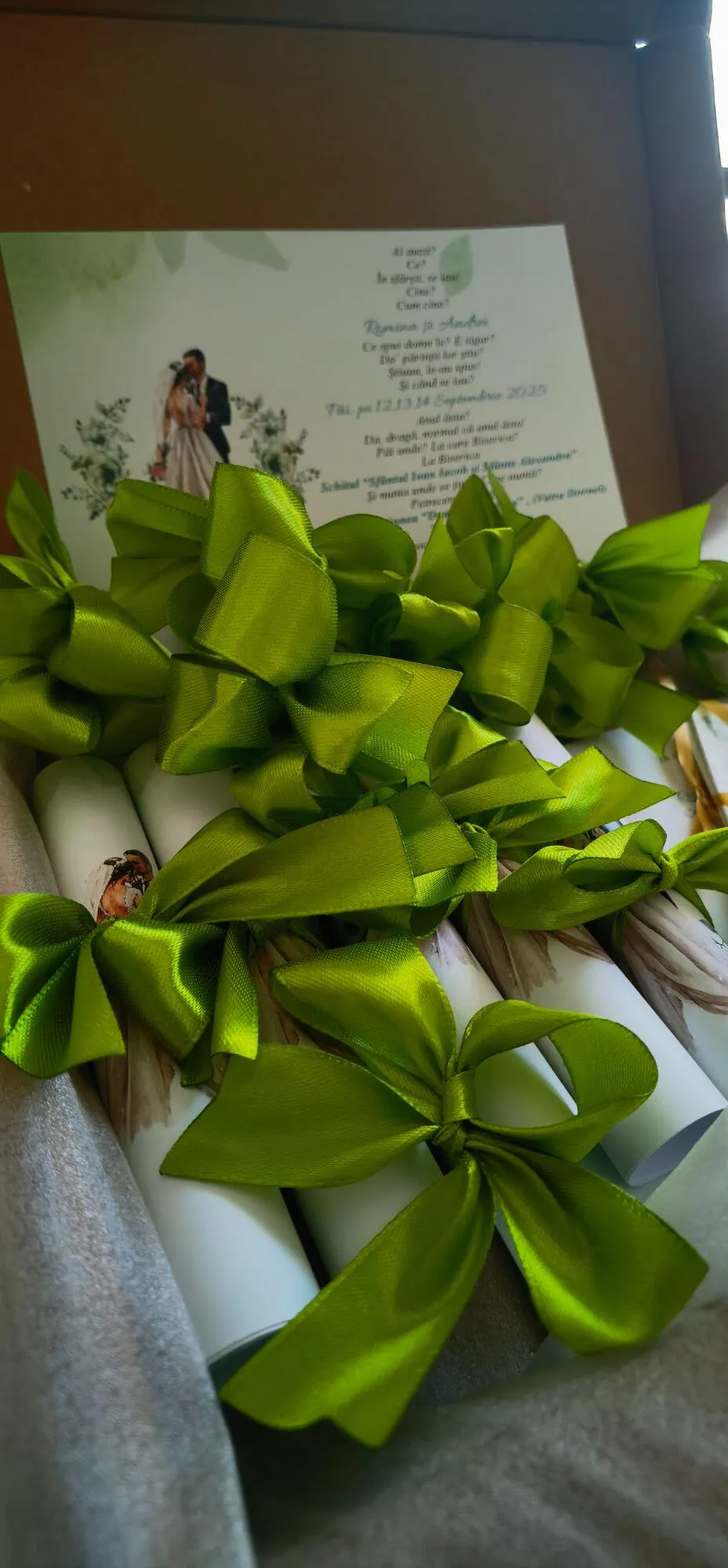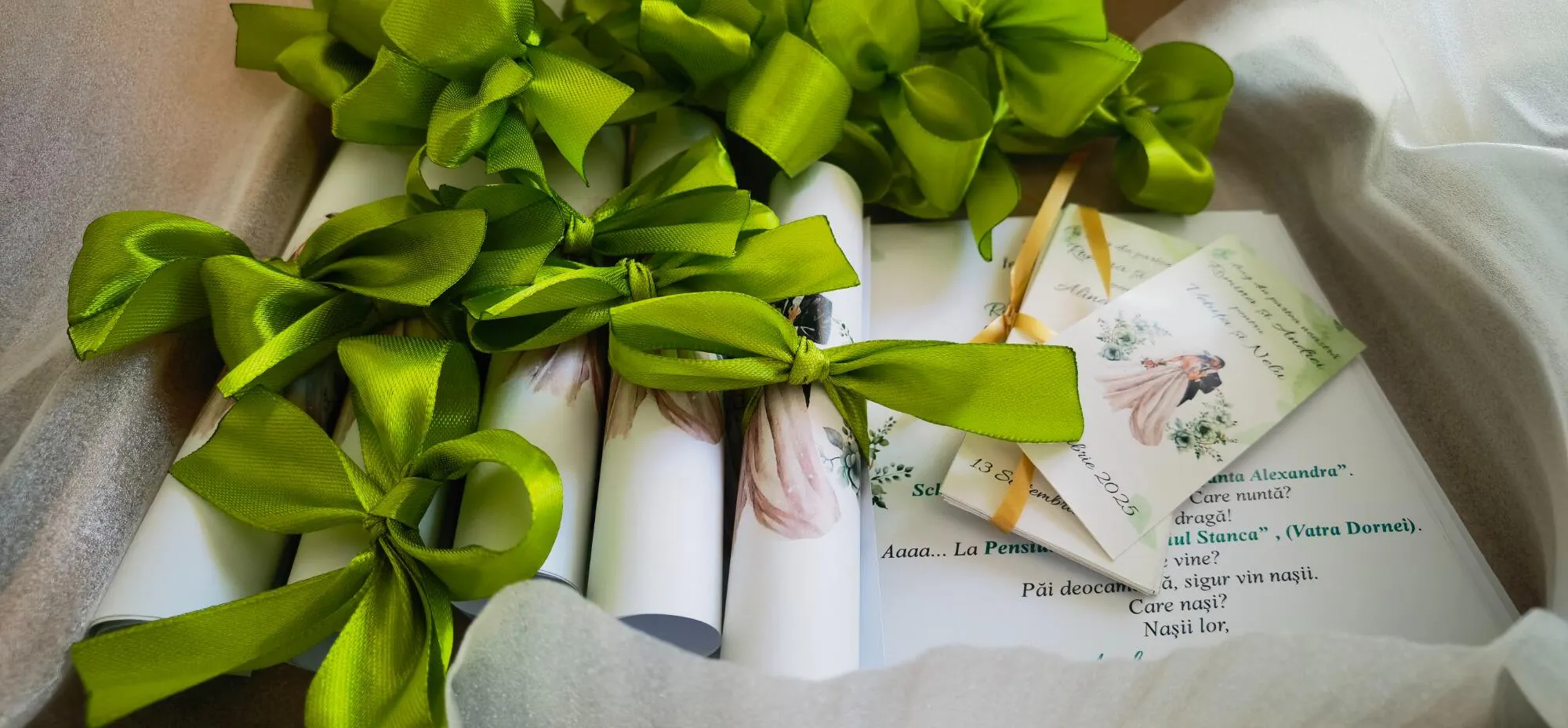 🎀 Invitație de Nuntă Rulată cu Fundiță – Eleganță și Originalitate pentru Evenimentul Tău Special 🎀