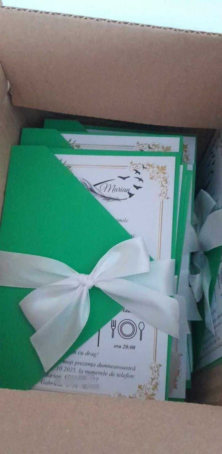 - invitație executată manual printată pe carton alb,