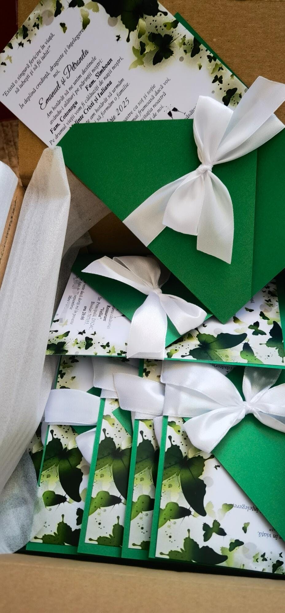 Invitație de Nunta cu plic, fundița și eticheta personalizată.
