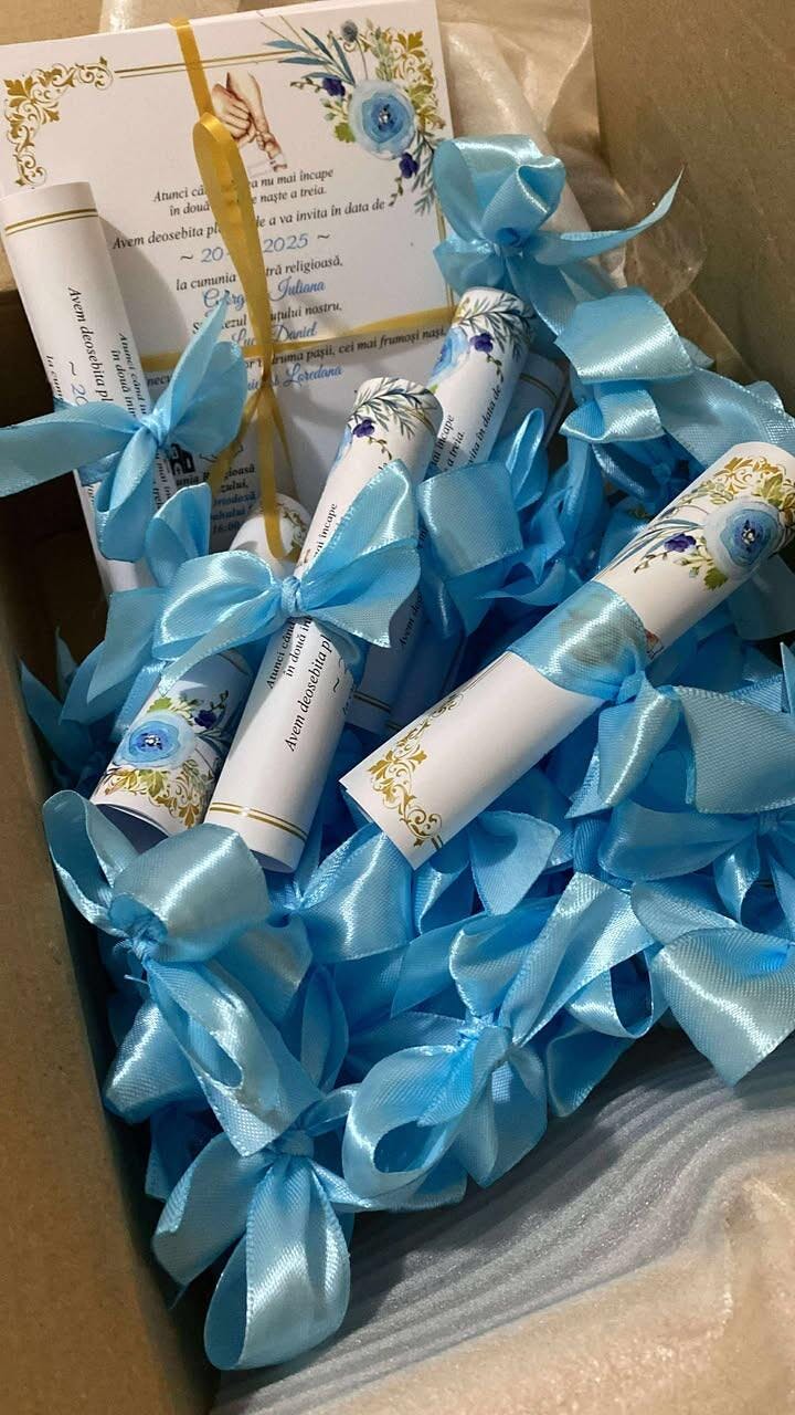 Invitație de Nunta si Botez rulată si cu fundiță.