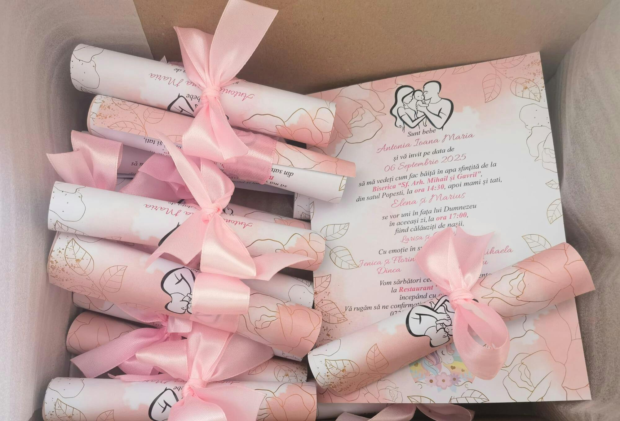 - personalizare grafică (modelul invitației este la alegere din design-urile de pe site ori nou),
