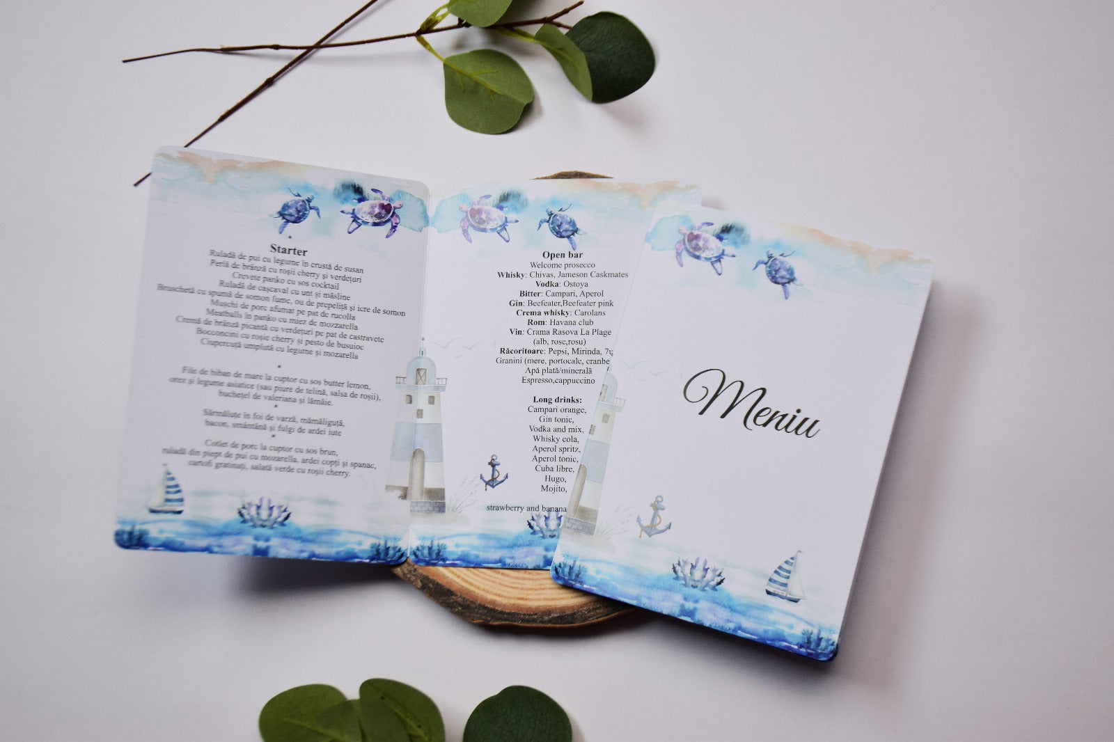 Fie că e nuntă sau botez, meniul adaugă un plus de eleganță și coerență vizuală. Formatul, culorile și stilul se adaptează temei tale, iar printarea este de înaltă calitate.