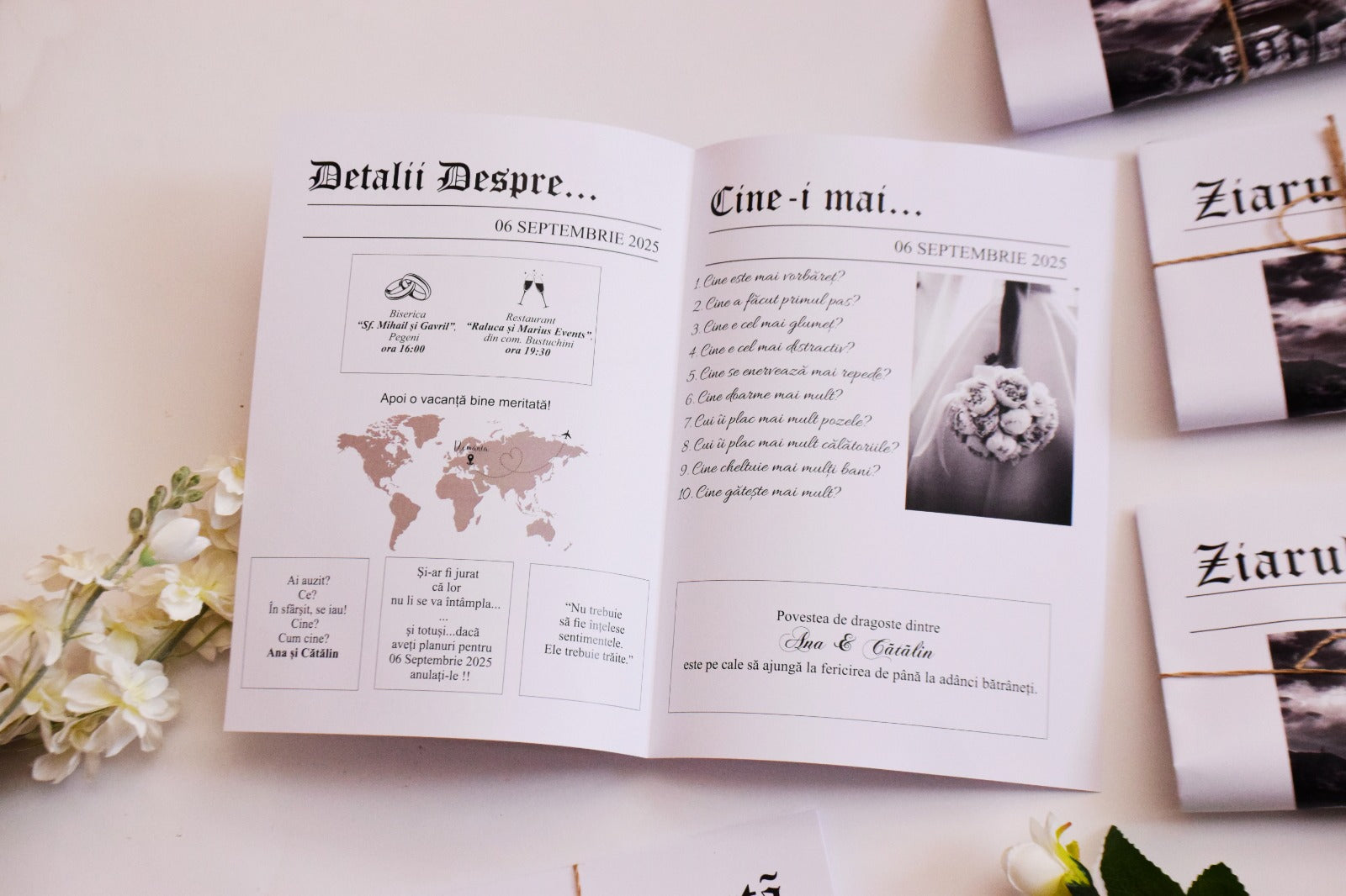 Ziar de Nuntă Personalizat – Invitație Tip Ziar cu Poză și Finisaje Handmade
